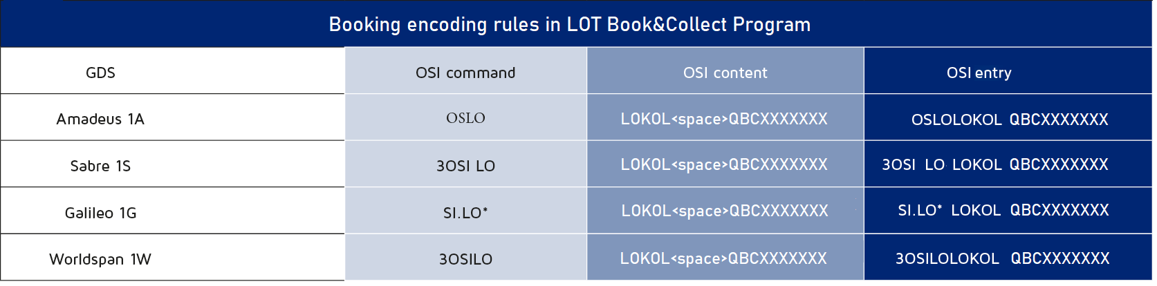 LOKOL = LOT Book&Collect loyalty program prefix.QBCXXXXXXX = your personal LOT Book&Collect account number.Self-coding rules for tickets in the NDC system (NDC X and Seller UI) can be found here. Manual ticket coding in NDC system can be found here.